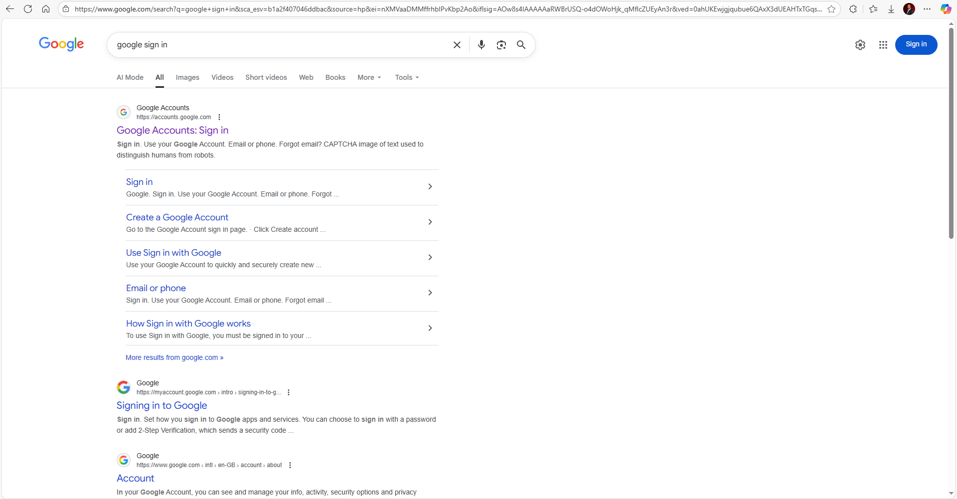 Now you need to search in the google search bar "Google Sign In". This should take you to the sign in page. After that you need to click the link that comes first, or the link that says accounts.google.com doing so will take you to the sign in page.